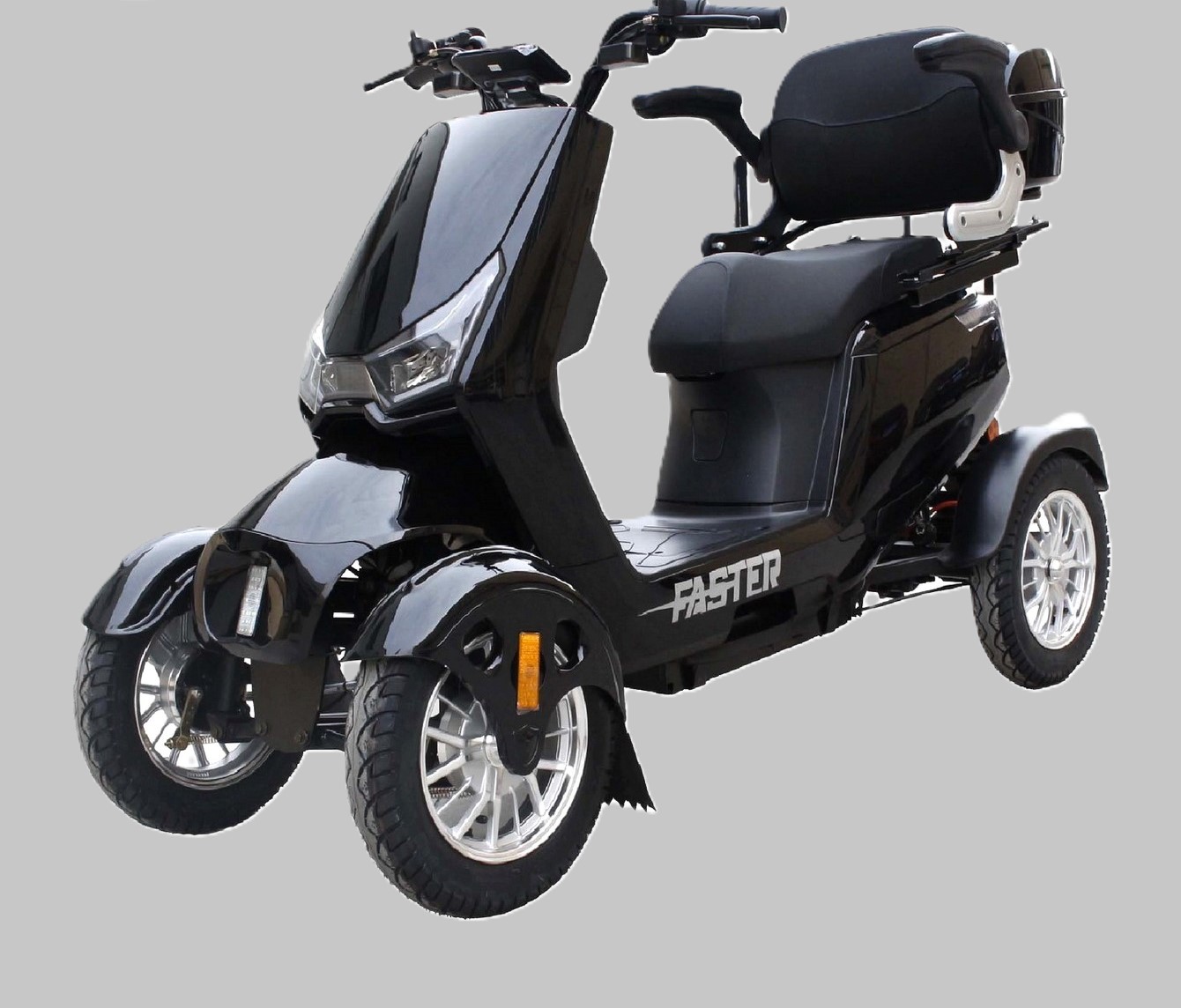 Le Faster Q3 propose une boîte de rangement arrière verrouillable ainsi qu’un compartiment supplémentaire sous le siège pour vos effets personnels. Ses quatre grandes roues assurent une stabilité optimale et une conduite confortable sur pratiquement toutes les surfaces.